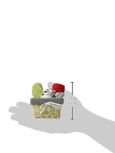 7 PIECE BASKET SET. Includes: basket 6" x 4" x 6", liner, 2 star-embossed velour burps, 1 scatterprint burp, 2 scatterprint bibs