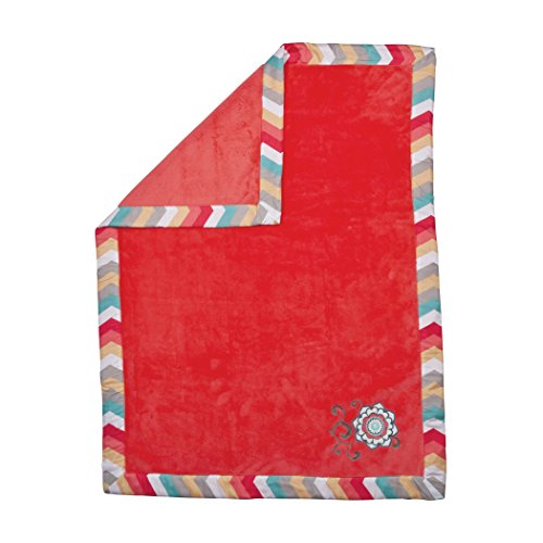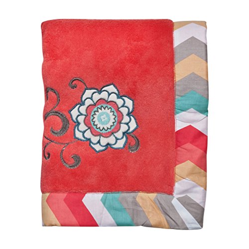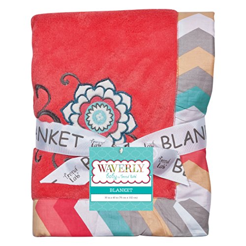 - Trend Lab Waverly Pom Pom Play Embroidered Fleece Baby Blanket, Coral