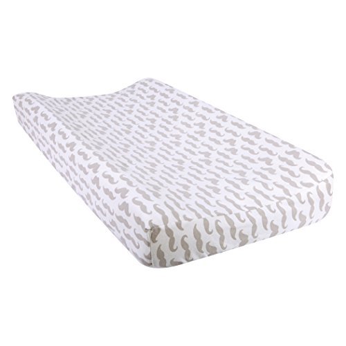 Our soft 100% cotton flannel Mustaches Changing Pad Cover in soft gray will comfort your baby and protect your changing pad.;Machine washable cover is highly absorbent and fully elasticized to offer a sleek tailored fit on standard 16 inch x 32 inch contoured changing pads.