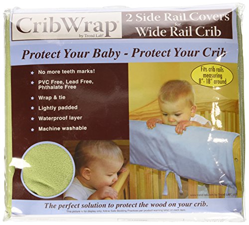 Soft padded 100% polyester fleece crib rail covers with waterproof backing;Protect your teething baby from harmful toxins and guard your crib rails from teeth marks and drool discoloration. When laid flat, each CribWrap measures 27 long by 18 wide. CribWrap fits most wide side crib rails measuring up to 8 - 18 around.;Rail cover is made with soft fleece on top, a padded middle and waterproof back for ultimate protection; Simply wrap and tie this solution to protect your child and crib investment for years to come;Rail cover is free of PVC, lead, phthalate and BPA;Includes two short rail covers for crib sides. Coordinating long rail cover is available for separate purchase to offer ultimate crib coverage. Narrow versions of CribWrap rail covers are also available by Trend Lab