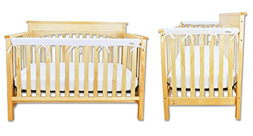 Bundle Includes: 1 Long Rail Cover, 2 Side Rail Covers;1 fleece front rail cover that measures 51 long and has 3 sets of 6.5 ties. 2 Side rail covers that measures 27 long and have 3 sets of 6.5 ties.;Rail cover is made with soft 100% polyester fleece on top, a padded middle and waterproof back for ultimate protection; Simply wrap and tie this solution to protect your child and crib investment for years to come.;Protect your teething baby from harmful toxins and guard your crib rails from teeth marks and drool discoloration. When laid flat, CribWrap measures 51 long by 6 wide. CribWrap fits most narrow front and back crib rails measuring up to 8 around.;Rail cover is free of PVC, lead, phthalate and BPA.