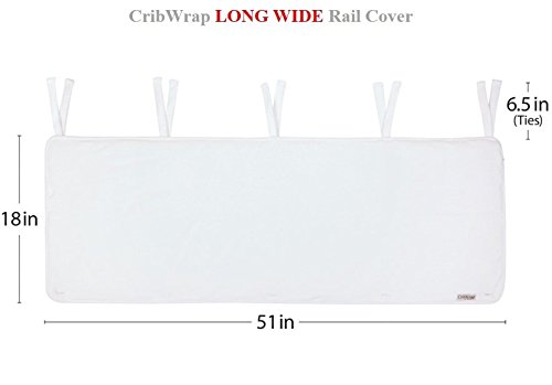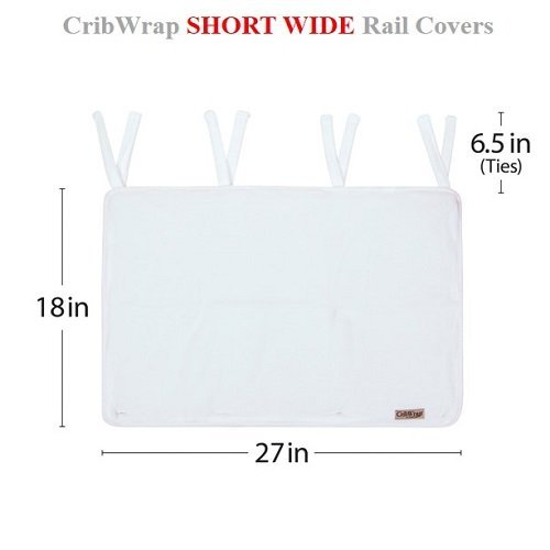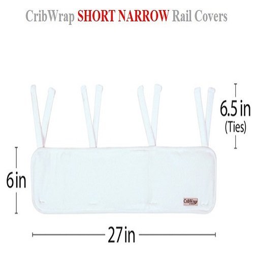 Measure your rail to get the right size;Protect your teething baby from harmful toxins and guard your crib rails from teeth marks and drool discoloration. When laid flat, each CribWrap measures 27 long by 6 wide. CribWrap fits most narrow side crib rails measuring up to 8 around.;Rail cover is made with soft fleece on top, a padded middle and waterproof back for ultimate protection; Simply wrap and tie this solution to protect your child and crib investment for years to come;Rail cover is free of PVC, lead, phthalate and BPA;Includes two short rail covers for crib sides. Coordinating long rail cover is available for separate purchase to offer ultimate crib coverage. Wide versions of CribWrap rail covers are also available by Trend Lab;Soft padded 100% polyester fleece crib rail covers with waterproof backing