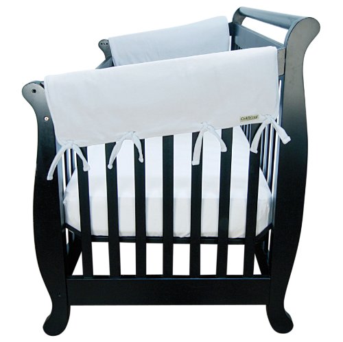 Protect your teething baby from harmful toxins and guard your crib rails from teeth marks and drool discoloration When laid flat, each crib wrap measures 27 long by 18 wide Crib wrap fits most wide side crib rails measuring up to 8 - 18 around;Rail cover is made with soft fleece on top, a padded middle and waterproof back for ultimate protection; simply wrap and tie this solution to protect your child and crib investment for years to come;Rail cover is free of PVC, lead, phthalate and BPA;Soft padded 100% polyester fleece crib rail covers with waterproof backing;Includes two short rail covers for crib sides Coordinating long rail cover is available for separate purchase to offer ultimate crib coverage Narrow versions of crib wrap rail covers are also available by trend lab