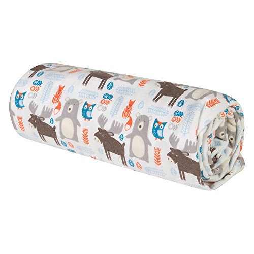 Trend Lab Deluxe Flannel Swaddle Blankets offer the perfect amount of breathable warmth and softness to keep baby nice and cozy. The soft 100% cotton flannel Scandi Forest swaddle features bears, moose, fox, and owls in walnut brown, blue moon, white and pops of bright orange is perfect for your little one. Our generously oversized swaddles measure 48 inch x 48 inch and are multipurpose for swaddling, tummy time and on the go nursing. Additional colors, prints and Deluxe Flannel products from Trend Lab are sold separately.