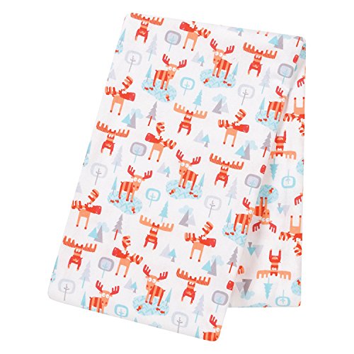 Trend Lab Deluxe Flannel Swaddle Blankets offer the perfect amount of breathable warmth and softness to keep baby nice and cozy. The soft 100% cotton flannel Winter Moose swaddle features playful moose in blue glow, silver gray, peach, burnt orange, and white is perfect for your little one. Our generously oversized swaddles measure 48 inch x 48 inch and are multipurpose for swaddling, tummy time and on the go nursing. Additional colors, prints and Deluxe Flannel products from Trend Lab are sold separately.