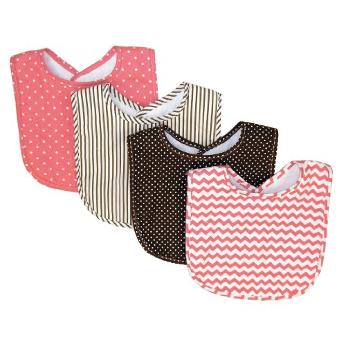 Trend Lab Cocoa Coral Bib Set, Coral Pink, 4 Count by Trend Lab
