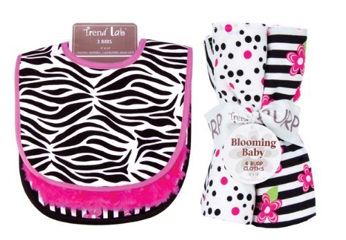 • Trend Lab Zahara Zebra 3 Pack Bib and 4 Pack Burp Cloth Set