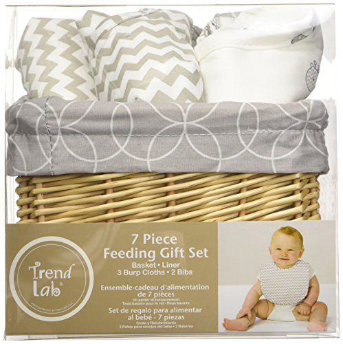 Trend Lab 7 Piece Bib & Burp Feeding Basket Gift Set, Safari Gray by Trend Lab