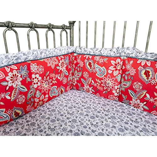 Charismatic Crib Bumpers from Waverly Baby by Trend Lab feature Waverly?s bright and cheerful, coral pink based Charismatic floral print with a ruffled border in the softened gray and cream Lively Trail floral pattern.
