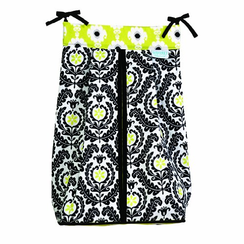Keep your diapers organized, concealed and close at hand with the Rise and Shine Diaper Stacker from Waverly Baby by Trend Lab. Diaper stacker features a meridian damask print in black and white with pops of linden green accented by a linden green based Rise and Shine print in black and white top and a linden green trim. Ties allow for easy attachment to most dressers and changing tables. Measures 12 in x 8 in x 20.25 in and holds up to three dozen diapers.
