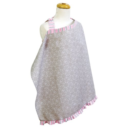 100% cotton nursing cover;Measures 24 x 34;One size fits most;Collar can be positioned to view baby while nursing;Adjustable neck strap with d ring