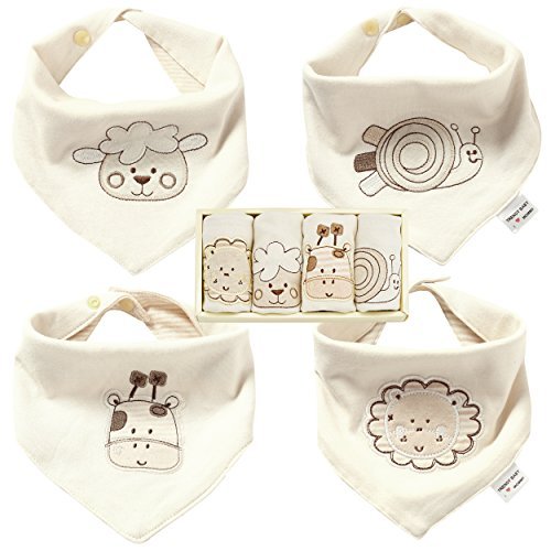 ??MANUFACTURER PRODUCT LAUNCH SPECIAL - See Special Offers and Product Promotions Below for Details;??EXCEPTIONALLY ABSORBENT: Baby Bibs made up of 100% soft organic cottons, front and back. Comfortable, resistant, waterproof fabric protects your babies from rash, and keeps your baby boy and baby girl dry and clean throughout teething and feeding, excessive drooling, burping, and spit ups.;??PERFECT SIZE: 2 nickle free adjustable snaps, with each one measuring a large 7.5 inches at the widest neck opening to make sure that any newborn teether or drooler has a very comfortable fit.;??RETAINS ITS SHAPE AFTER WASH: It won't shrink, wear or color fade, so you never have to worry about the damage caused by washing.;??PERFECT GIFT SET - These baby bandana drool bibs are an ideal Babby Shower Gift set, and fits for any newborns, infants, toddlers, or kids between 3 -24 months old. Whether you are a friend, grandmother, grandfather, or a new mom, our pack of unique cotton bibs for your babies will be among the most cherished gift products new moms will receive.