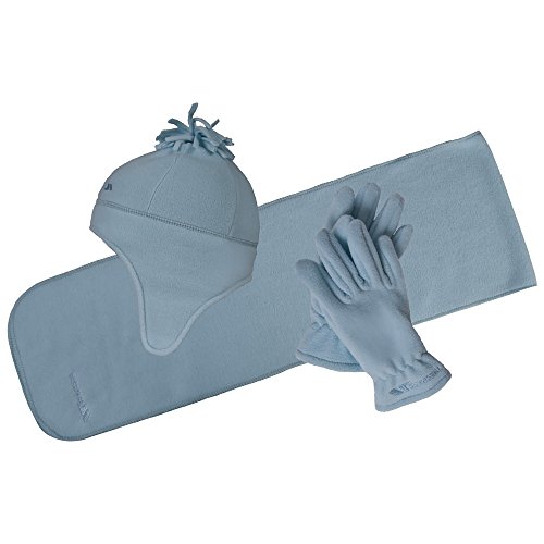 子供用フリース3点セット。セット内容:帽子、マフラー、手袋。ロゴ刺繍入り。