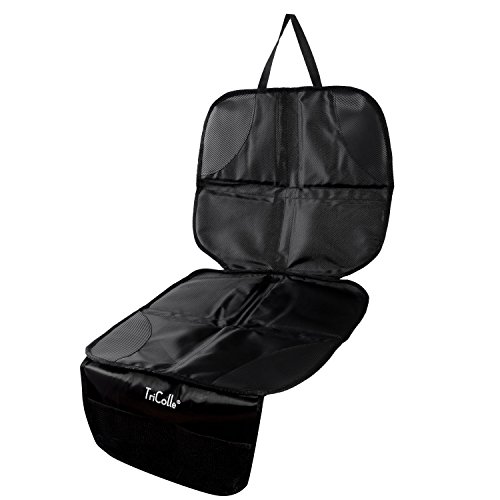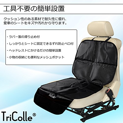 TriColle (トリコレ) チャイルドシートマット チャイルドシートと一緒に使う保護マット シート保護用 滑り止め付き 便利な収納ポケット付き 黒