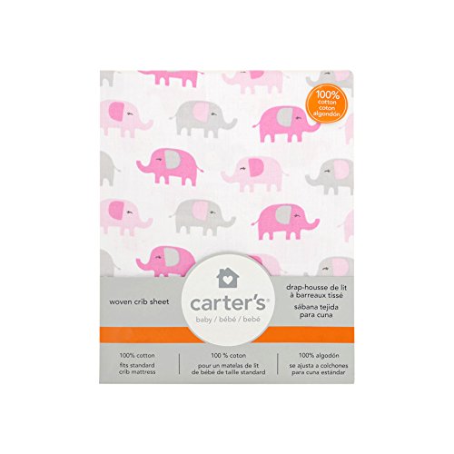 Carter's Cotton Fitted Crib Sheet, Pink Elephants by Carter's