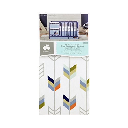 Measures 28 x 52 and fits all standard crib mattresses;Fully encased elastic edge provides snug and secure fit on mattress;Contemporary arrow themed print;Coordinates with crib bedding sets and other accessories in from Just Born's Adventure nursery bedding collection;Machine washable