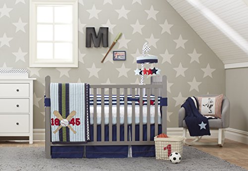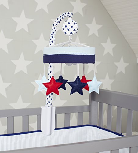 Just Born Vintage Sports Musical Mobile, Blue and Red Stars, Navy/red