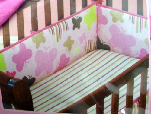 Pink Butterfiles Crib Bumper;Coordinates with 3 Piece Pink Butterflies Nursery Set;4 Separate Pieces;Fits all standard cribs;65% Polyester, 35% Cotton
