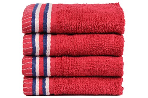Trident 100%コーマ綿 (バス、ハンド&ウォッシュクロス) タオルギフトセット 4 Pack Wash Cloths レッド HSP04FT174