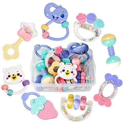 tumama 8pcs Baby Rattles Teethersセット、グラブ玩具、Shaking Bell Rattleストレージボックスセット幼児、新生児の赤ちゃん、幼児、キャンディ色