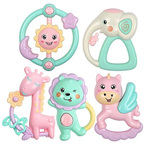 tumama 5点Rattleおもちゃ象ライオンキリン馬Sunflower Baby Rattleセットハンドベル幼児幼児0から12ヶ月の新生児、キャンディカラー