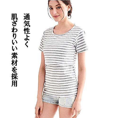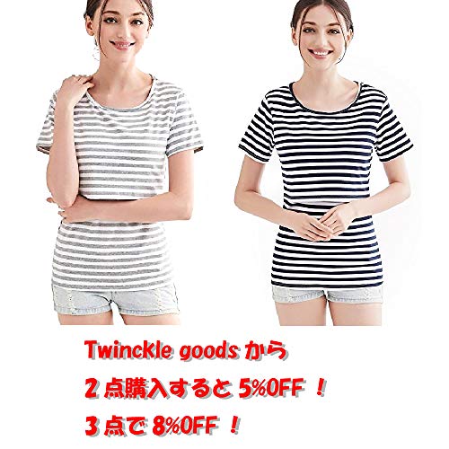 Twinkle goods (ツインクルグッズ) 授乳服 ボーダー 授乳口 付き 半袖 Tシャツ カットソー トップス マタニティ ブラック Lサイズ