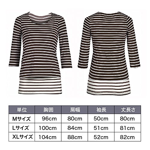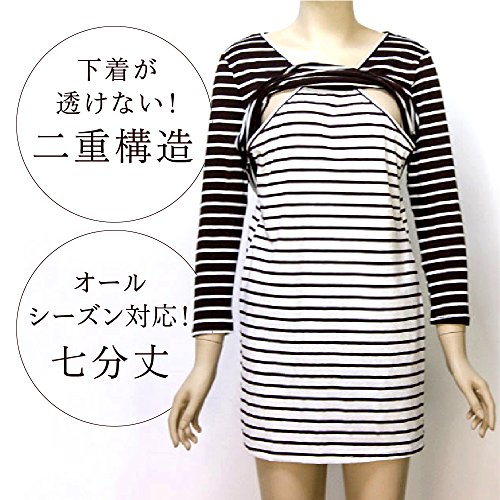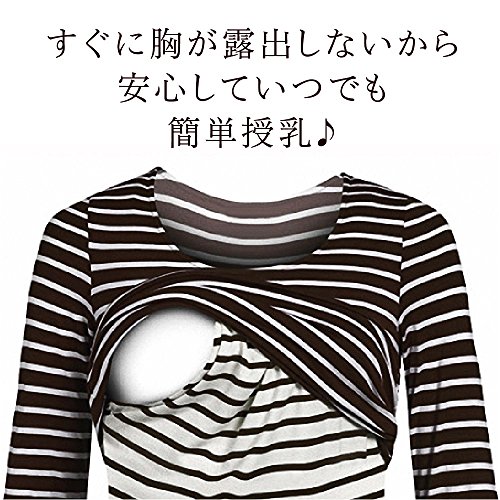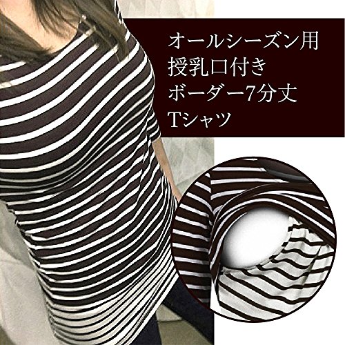 Twinkle goods (ツインクルグッズ) 授乳服 授乳口 付き Tシャツ ボーダー 七分丈 オールシーズン L