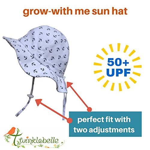 幼児用 50+ UPF 日光予防帽子 Sun hat、 サイズの調整可能、チン・ストラップ付き(M: 6-36ヶ月, ホワイトウェーブ)