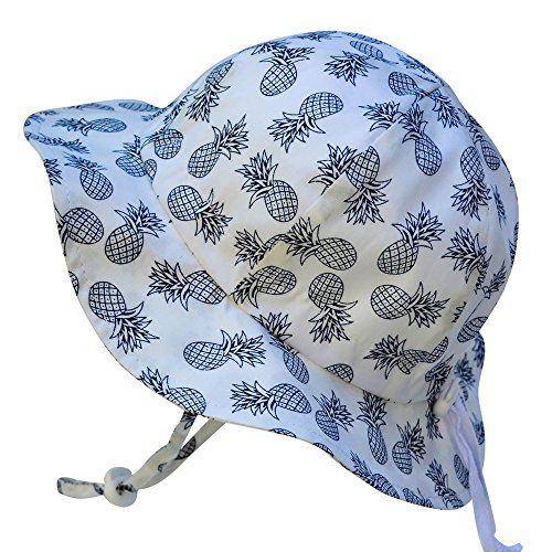幼児用 50+ UPF 日光予防帽子 Sun hat、 サイズの調整可能、チン・ストラップ付き(M: 6-36ヶ月, ホワイトパイナップル)