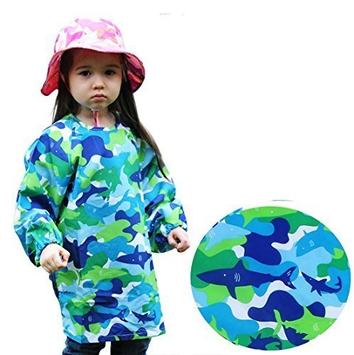 - Long Sleeve School Art Painting Apron Smock Coverall, Breathable, Adjustable in Size (Grade K-3: 5-7 Years, Blue Shark)