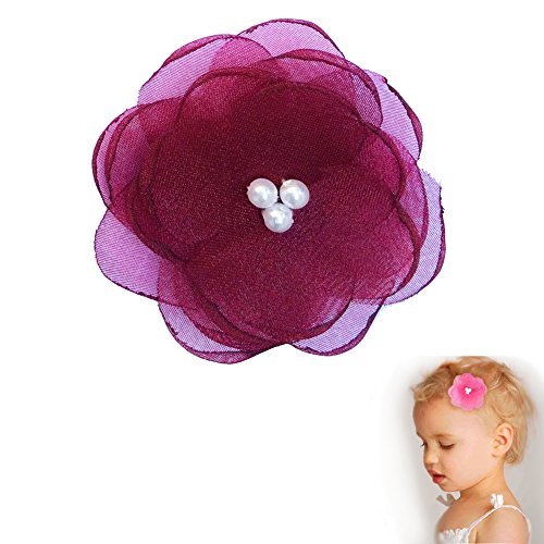 - Pearl Poppy Flower Hair Clip - Girl TruStay Clip - Best NO Slip Barrette For Fine Hair (GC9-Burgundy)