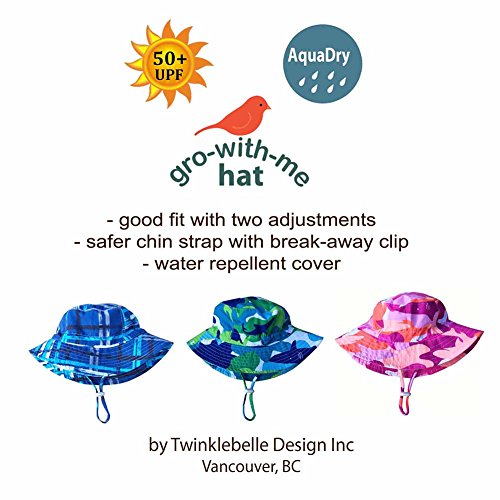 私どもの帽子はお子様の成長に合わせて調整することができ、すぐに買い換える必要はありません。経験豊かなバンクーバーのお母様方が開発した商品で、頭の周りに付属している紐でサイズの調整ができ、どのお子様にも心地よくフィットします。フィット感の良い帽子は活発なお子様には最適です。顎紐はお子様が帽子を脱ごうとしたり、強い風が吹いてもしっかりと頭に固定させますが、何かに強く引っかかったりするとすぐに離れるクリップがついて安全です。50+UPF日焼防止と撥水加工の生地を使用しています。また、帽子のつばが広く日差しをよくカバーします。折り畳むと小さくなるので収納にも持ち運びにも簡単です。
