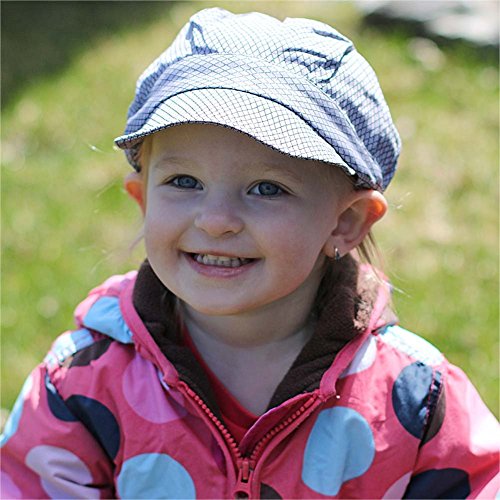 乳児用キャスケット 春夏秋用 サイズ調整可能 50+UPF日焼防止帽子 (S:0—9ヶ月, 綿キャスケット: グレー網目模様)