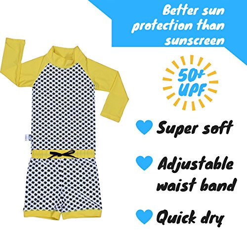 超柔らかで超快適な50+のUVプロテクトのシャツ、ショートパンツを着せてあなたの小さなお子様を日射から守りましょう。