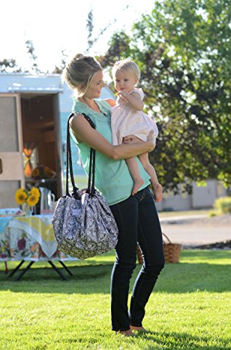 Easy to carry portable playmat and toy tote in one; Folded dimensions 13 x 10 x 2; Open: 36 inches diameter;Roomy interior with 8 mesh pockets to store diapers, wipes and key essentials; Strop drop is 23 to 27;Soft velour interior creates a clean play surface;Water-resistant outer layer for quick, hassle-free cleaning BPA, PVC and phthalate free;100% polyester and machine washable