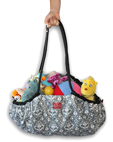 2 Red Hens Toy Nanny and Play Mat, Grey Damask by 2 Red Hens
