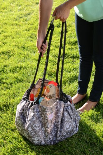 - 2 Red Hens Toy Nanny and Play Mat, Grey Damask