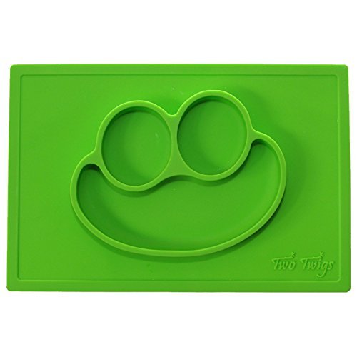 ??MAKE MEALTIME FUN - Three compartments allow you to arrange healthy snacks & meals to please any picky eater. Even your pickiest little one will love our Smiley Face design.;??NO MORE MESS - Silicone mat creates a tight suction to most hard, clean surfaces (glass, wood, laminate & marble). No more tossing their bowl or plate. More food in their belly, less on the floor.;??EASY CLEAN UP - Simply rinse, wash with soapy water or toss in the dishwasher. Makes clean up quick and easy. Our mats are microwave and oven safe too.;??SAFE AND ECO-FRIENDLY - 100% FDA approved food grade silicone, BPA free, PVC free & phthalate free. Silicone doesn't harbor the growth of bacteria, mold or fungus so you can feel save serving food directly on the mat.;??100% MONEY BACK GUARANTEE - We're sure you will love Two Twig's silicone placemat, but if you are unhappy with our product, for any reason, we will promptly refund your money.