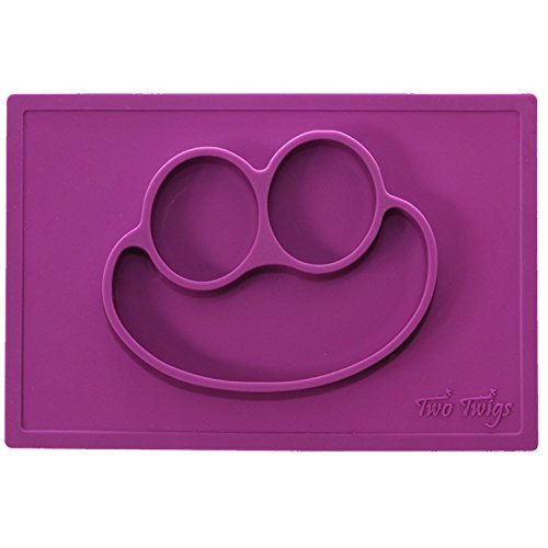 ??MAKE MEALTIME FUN - Three compartments allow you to arrange healthy snacks & meals to please any picky eater. Even your pickiest little one will love our Smiley Face design.;??NO MORE MESS - Silicone mat creates a tight suction to most hard, clean surfaces (glass, wood, laminate & marble). No more tossing their bowl or plate. More food in their belly, less on the floor.;??EASY CLEAN UP - Simply rinse, wash with soapy water or toss in the dishwasher. Makes clean up quick and easy. Our mats are microwave and oven safe too.;??SAFE AND ECO-FRIENDLY - 100% FDA approved food grade silicone, BPA free, PVC free & phthalate free. Silicone doesn't harbor the growth of bacteria, mold or fungus so you can feel save serving food directly on the mat.;??100% MONEY BACK GUARANTEE - We're sure you will love Two Twig's silicone placemat, but if you are unhappy with our product, for any reason, we will promptly refund your money.