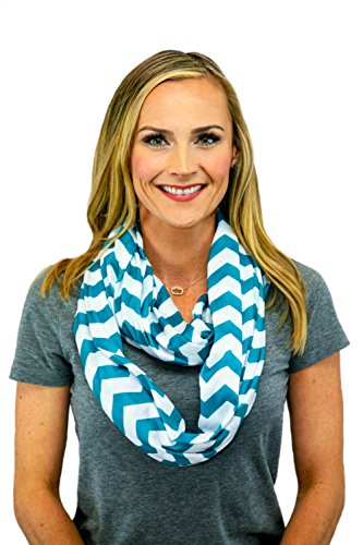 Tykes and Tails baby nursing cover goes from a fashionable scarf to breastfeeding cover with one hand leaving a free hand for your Newborn. Looking for maternity clothing accessories? Look no further.;Our breastfeeding infinty scarf is made from a lightweight breathable material and and makes a great accessory to most any wardrobe. It folds nicely and will stow conviently in any diaper bag.;Teal / White Chevron Single Sided Pattern Premium Breastfeeding Cover / Nursing Scarf with many other colors, choices and patterns available. These are great for new mothers and new babies alike!;Wearable trendy breastfeeding scarf providing privacy for Mom and Baby! Our covers offer distraction free breastfeeding, keeping Baby's focus on nursing while giving Mom comfort in Public or Private.;Save 10% when you purchase Any 2 of our Products! Want an even better deal? Buy 3 or more and save 15%! With Beautiful Packaging and returns for 30 days, our products are a perfect Baby Shower Gift!