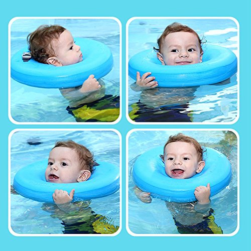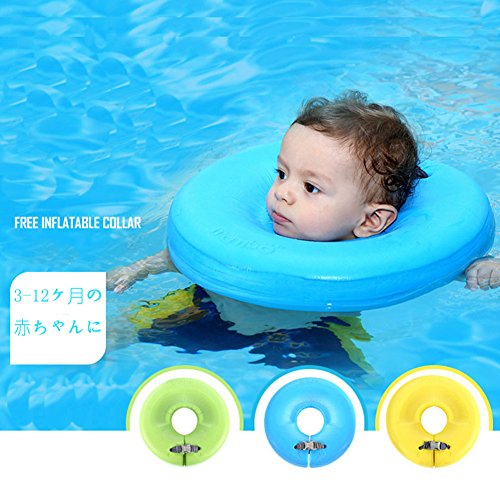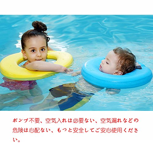 Ueasy 赤ちゃんのトレーニングに プレスイミング ベビー用 首浮き輪 ポンプ不要 空気入れは必要ない もっと安全 首リング プールやお風呂で バランス 水遊び 入浴 調節ベルト付 3-12ヶ月の赤ちゃんに (Medium, イエロー)