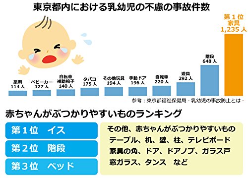 - 衝撃を吸収する柔らかい素材を使用しており、赤ちゃんやお年寄りのぶつかり衝撃を緩和します。