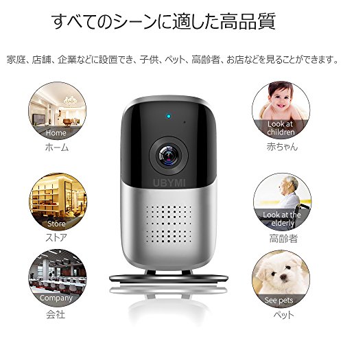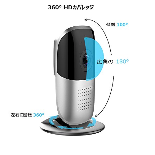 ネットワークカメラ UBYMI 180° WIFI 防犯カメラ ワイヤレス IPカメラ ベビーモニター 監視カメラ スマホ対応 暗視撮影 マイク内蔵 動体検知 ペット 子供 見守り 720P 日本語 APP・説明書 (銀)