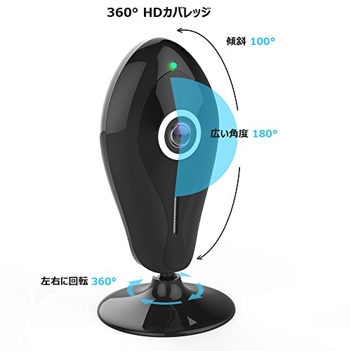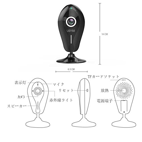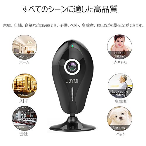 ネットワークカメラ UBYMI 180° WIFI 防犯カメラ ワイヤレス IPカメラ ベビーモニター 監視カメラ スマホ対応 暗視撮影 マイク内蔵 動体検知 ペット 子供 見守り 720P 日本語 APP・説明書 (黒)