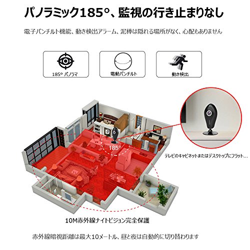 - パノラマカメラ:1/3 "の魚眼レンズを使用した水平185°の視野角、昼間または夜間の部屋全体を見るHDビデオ品質(ナイトビジョンカメラ付き)。