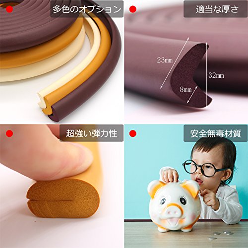 Te Fiti コーナー ガード クッション 全長5m +8個 コーナー ガード 赤ちゃん けが防止 保育園での使用 セーフティーグッズ 両面テープ 付き L型 (ブラウン)