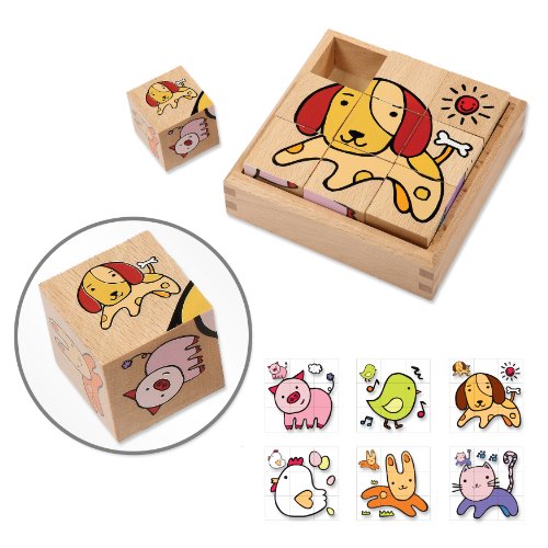 木のキューブ型絵合わせパズル