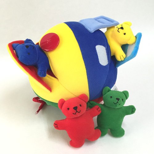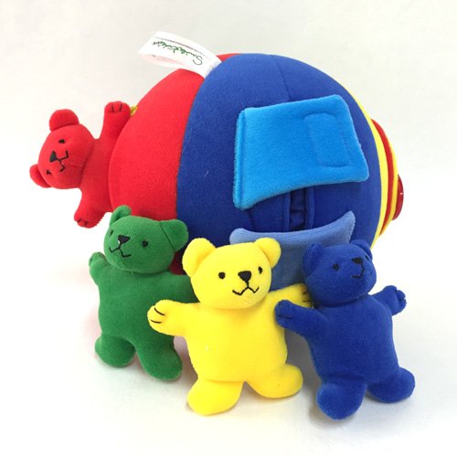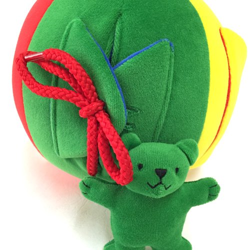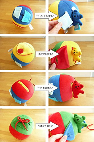 仕掛けがいっぱいの布製ボール。 カラフルな布製ボールには、指先を使う仕掛けがいっぱい♪ ファスナーやマジックテープ、ボタンにリボン結び、楽しく遊びながら、これらをマスター出来ちゃいます。 はじめは、ボールとして投げたり転がしたり。仕掛けを解くとくまちゃんがこんにちは♪ 指先の訓練が遊びの中で身に付くのは嬉しいですね。
