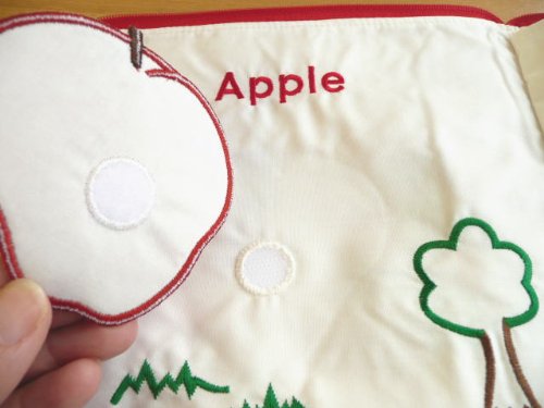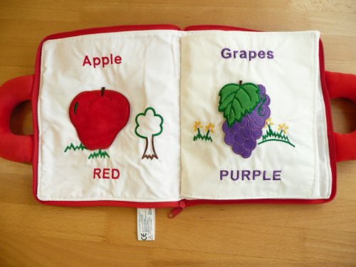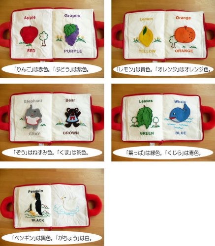 各ページ色をテーマにした果物や動物が描かれています。またそれぞれのパーツがマジックテープで取り外しができます。 ※手洗い可。(何回も洗うとマジックテープの付きが悪くなります。)