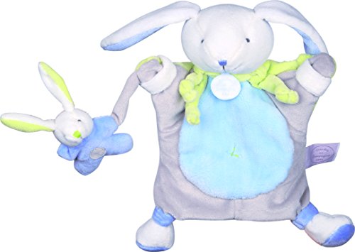 DOUDOU DC2567 パペット ラビットブルー マイクロファイバー 赤ちゃんうさぎのお腹を触るとパリパリ音がします サイズ H約25cm
